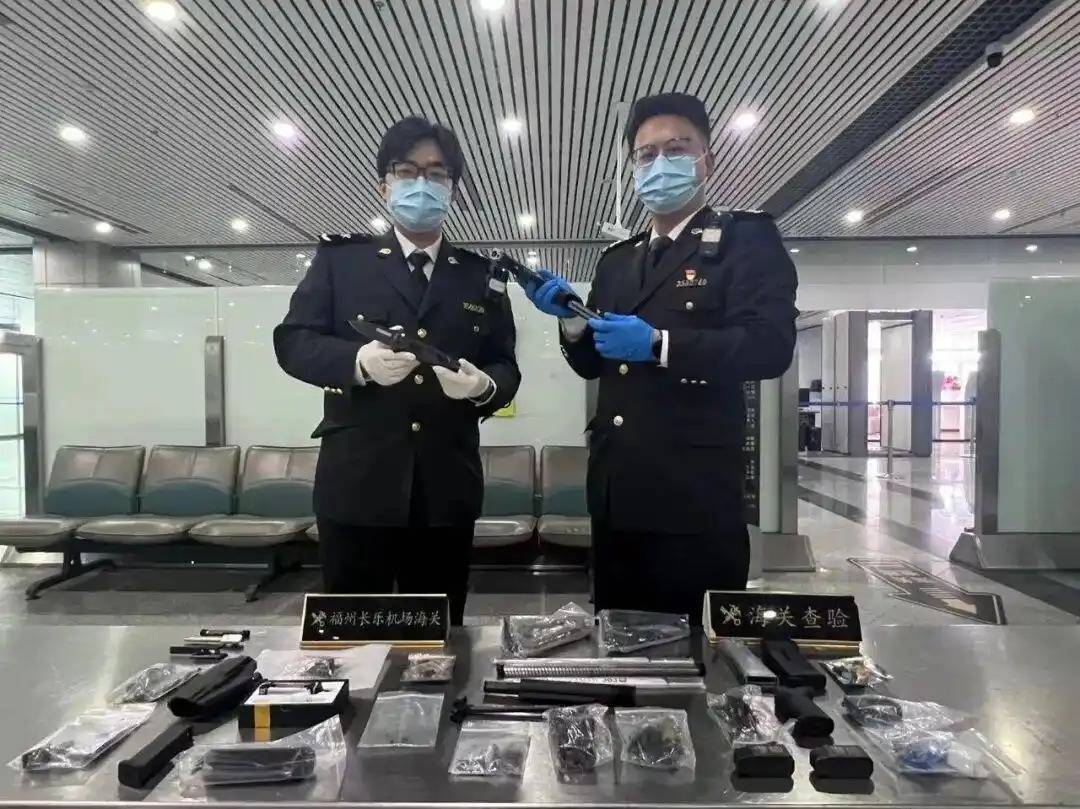 近日,福州海关所属福州长乐机场海关关员对进境航班监管时,发现一名选择“绿色通道”通关的旅客携带的行李物品机检图像异常。经开箱查验,在其行李箱内查获多个疑似枪管、枪托配件。00:31